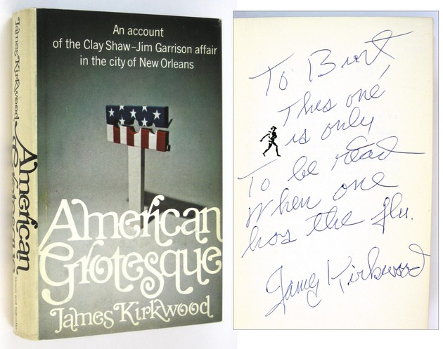 NY, Simon & Schuster, (1970). Nonfiction about the Clay Shaw-Jim Garrison affair -- a highly publicized and spectacular attempt to prove conspiracy in the assassination of JFK -- by the author of P.S. Your Cat is Dead and co-creator of A Chorus Line, no stranger to extravagant productions. Fine in near fine dust jacket and inscribed by the author: "To ____,/ This one/ is only/ to be read/ when one/ has the flu./ James Kirkwood." One of his more uncommon titles.